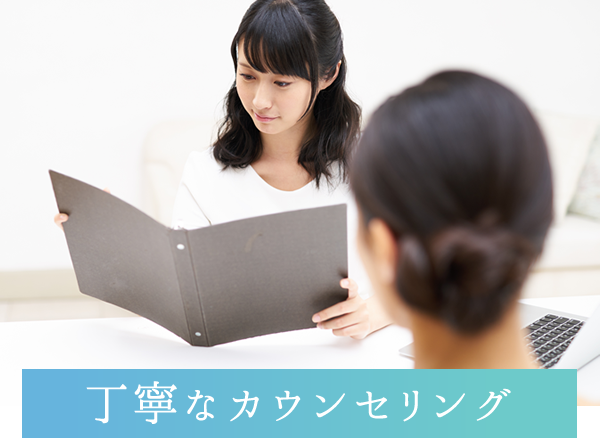 優しい施術でキレイが続く。丁寧なカウンセリングであなたに合わせた施術をご相談いただけますので初めての方でも安心していただけます。