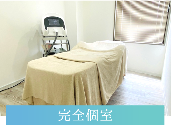 全部屋、鍵付きの完全個室です。脱毛は男女別でお部屋が分かれています。セルフエステ用のペアルームもございます。